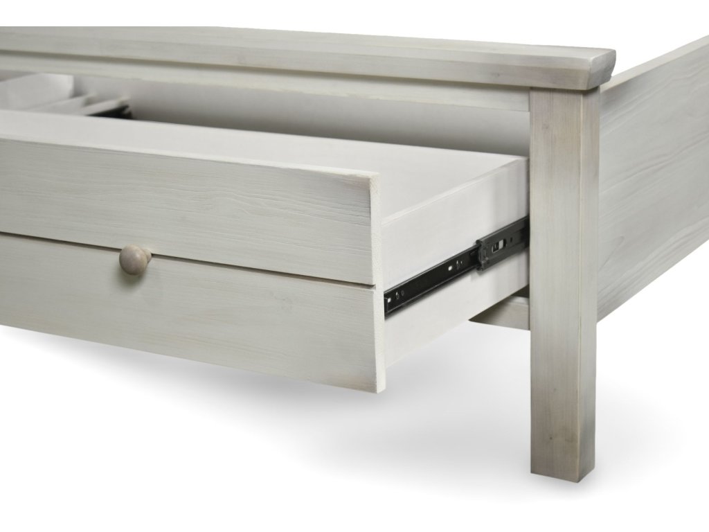 The Seawinds Bedroom Sea Winds Geneva King Storage Solidwood Bed in Distressed White is available in the Kitty Hawk, NC area from Outer Banks Furniture. Please request information here or call our store to verify availability.