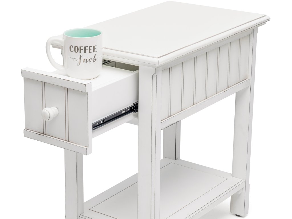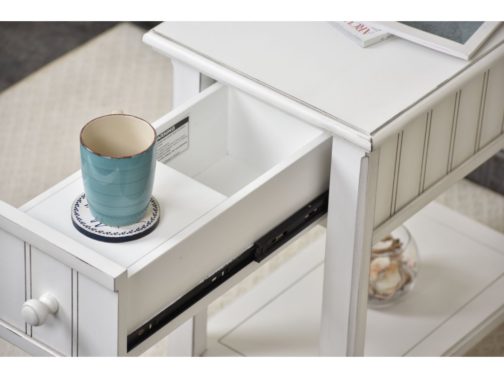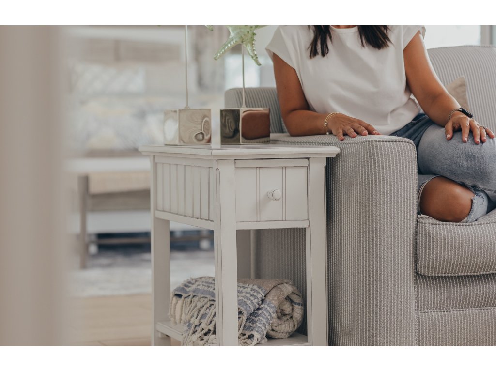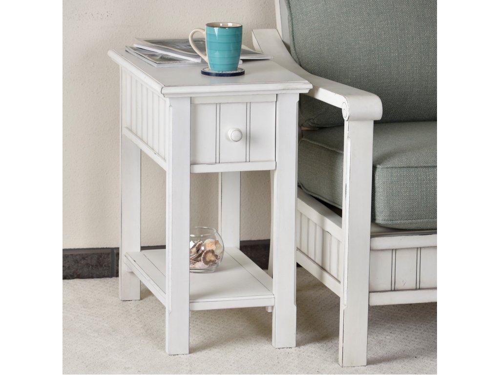 The Seawinds Living Room Sea Winds Monaco Chairside Table in Blanc is available in the Kitty Hawk, NC area from Outer Banks Furniture. Please request information here or call our store to verify availability.