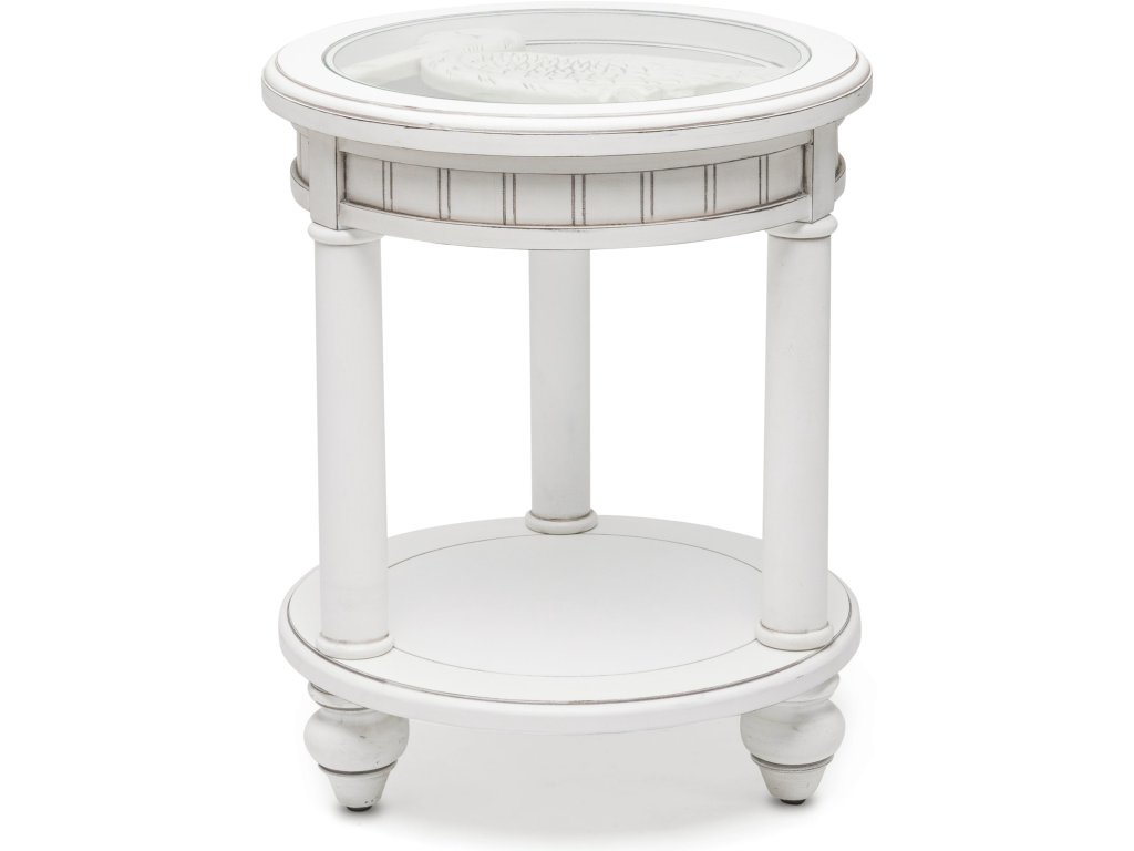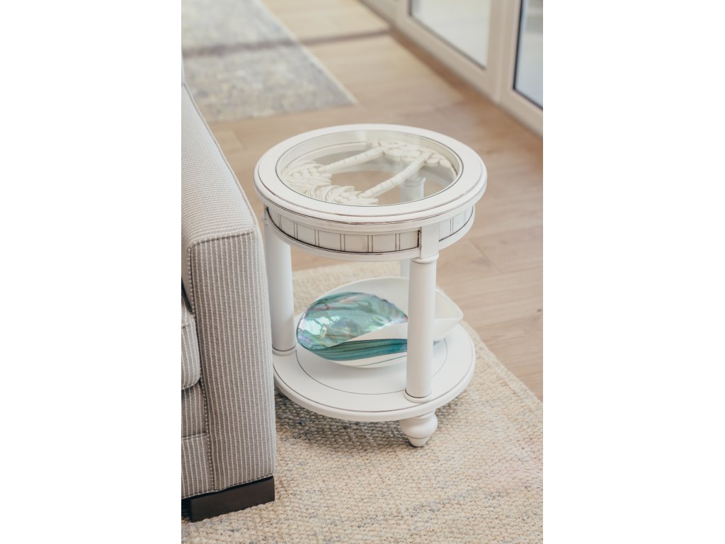 The Seawinds Living Room Sea Winds Monaco Round End Table with Anchor Insert in Blanc is available in the Kitty Hawk, NC area from Outer Banks Furniture. Please request information here or call our store to verify availability.